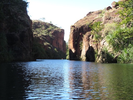 On se rapproche d'Adel's Grove et du parc de LawnHill. Le campement est ombragé. Nous projetons deux balades : l'une en canoë vers les gorges de Boodjamulla, l'autre à 50 km sur le site des fossiles de Riversleigh… bientôt la fin du mystère de la première photo ? Balade en kayak dans les gorges, vers les chute Indari.