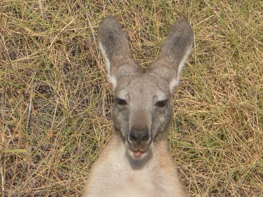 Kangourous, (ou wallabies en plus petit). Aux aguets il peut rester immobile à deux pas de vous puis bondir vers les fourrés. Ils apprécient les zones brûlées où repousse de l'herbe tendre. Quel ressort ! Décollage à la verticale ! Il y a les gris et les roux.