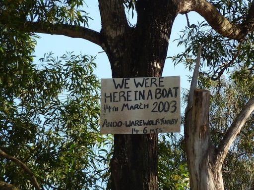 Certaines Road Houses ont plus de 100 ans, l'histoire des inondations est parfois mémorisée comme à Moreton : 14 mètres d'inondation en 2003, la pancarte est clouée dans le haut de l'arbre (à gauche).