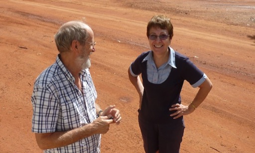 Julie, professeur à la retraite engagée dans les volontaires qui viennent faire la classe dans les contrées isolées. Elle reste 4 mois au Cape York et va de station en station selon les besoins des enseignements. Elle voyage avec sa caravane. Elle trouve Pgaz bien pratique car compact et tout terrain. Nous faisons sa connaissance lors d'une pause café… elle avait aussi sa pause et tricotait pour l'un de ses 10 petits enfants !