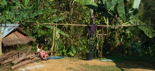 Les récoltes sont stockées à l'extérieur des habitations parfois loin au bord des rizières ou des champs de maïs dans cabanes sur pilotis pour éviter les intrusions de rats ou autres prédateurs.