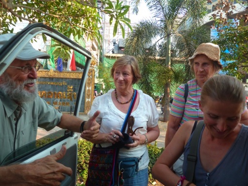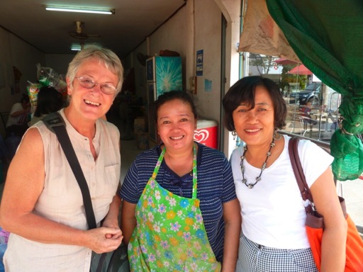 Rencontre amicale avec Somechine (à droite). Merci à Anne Tual, excellente connaisseuse du Laos, croisée à l'Alliance Française de Chittacong de nous avoir mis en contact. Il se trouve que notre lieu de rencontre jouxtait le restaurant d'une autre amie d'Anne ! Les trois grâces...