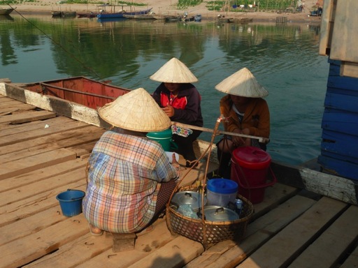 Beaucoup d'enfants partout. Des écoles parfois bien vétustes. On cuisine dehors et on papotte sur un petit banc autour du foyer. On pile le grain de riz à la force du poignet, on tamise les grains à la main, on charge les sacs à dos d'homme. Des motoculteurs sont visibles par-ci par-là, les buffles donnent encore de la force dans bien des coins.