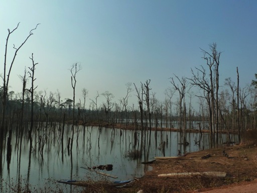 fraîcheur des bivouacs. Thakek, pas encore de pont, il