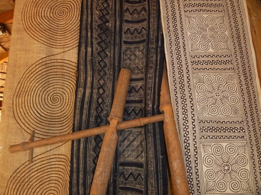 Luang Prabang cultive les traditions artisanales du tissage de la soie. Nous allons à OckPopTok, traduction : l'est rencontre l'ouest (www.ockpoptok.com). C'est un centre de formation et de production du tissage de la soie. Au début était le ver à soie, on le nourrit de feuilles hachées menu, puis il grandira, fera son cocon et le fil de soie sortira de la marmite d'eau bouillante. Teintures végétales puis tissage, tout se fait sur place. Il y a aussi du batik.