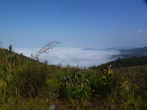 Pour revenir du nord-est vers Vientiane, nous suivons une route transversale de Pakmong à Vieng Thong, la route 1C. Elle porte bien son nom : numéro 1. Elle nous fait traverser des paysages saisissants, des villages combien animés, des rivières claires et nous amène vers Phonsavan et la plaine des Jarres. Puis ce sera le contournement du point le plus élevé du pays à 2554m, un arrêt à ViangVien, Phou Koum et enfin les derniers 150 km vers Vientiane, la capitale. Nous terminons ainsi l'exploration du centre et du nord du pays. Il faudra passer en Thaïlande quelques jours pour obtenir un nouveau visa laotien et aller visiter le sud du pays. Galerie de photo de cette belle boucle. Matin au dessus des nuages. Scènes de la vie quotidienne.
