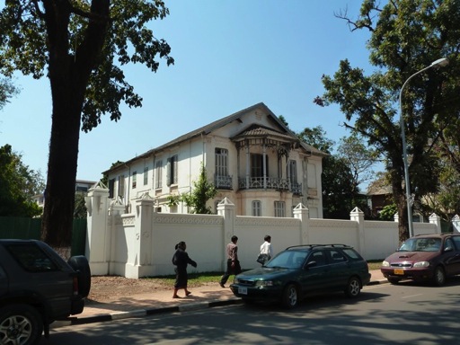Des rues parallèles au fleuve invisible, animées en journée, des villas du début du siècle somptueuses ou défraîchies, des frontons pas difficiles à lire pour les francophones. Palais présidentiel au bout de la rue.