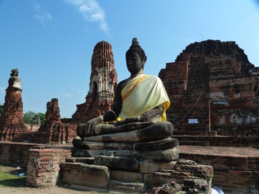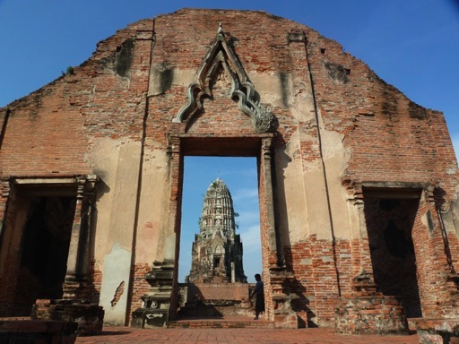 Ayuttaya, une ville construite dans une enceinte carrée, les temples se succèdent avec leurs forêts de chedis ou stupas, leurs Bouddhas de toutes les tailles, parfois debout et plus rarement en marche. Lieux archéologiques, ils gardent leur caractère religieux et souvent des offrandes ou écharpes oranges viennent témoigner d'actes de dévotion. Ratburana, le mieux conservé.