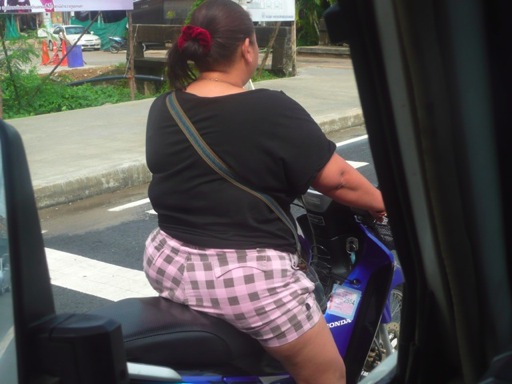 Autres impressions, nous sommes dans un pays confronté au tourisme de masse, c'est donc comme en ville, on ne se parle pas facilement, chacun pour soi, touristes ou Thaïlandais chacun vit sa vie. L'anglais n'est pas si familier que cela mis à part à proximité des grandes concentrations hôtelières. La cuisine thaï ? On mange à toute heure et partout : sur un banc, au volant, sur le trottoir, devant le temple, à côté de son comptoir, à moto... conséquence, le tour de taille est souvent XXL, proche du "bibendum Michelin". Avec son Vuitton !