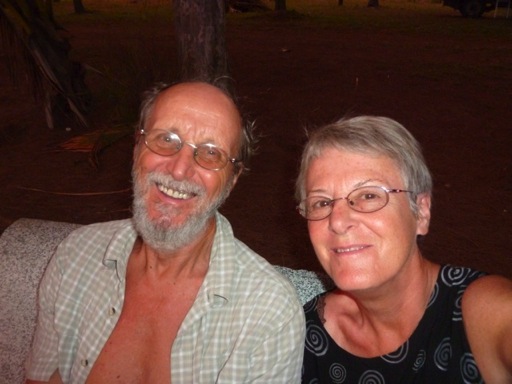 Rencontre de voyageurs. Kolanta, Marc et Christine se sont posés quelques temps. Ils repartiront autour du monde plus tard. Nous savions qu'ils étaient dans cette île par le site des Chazel. Nous interrogeons la "german bakery" et allons laisser un mot sur leur porte. Nous repassons le lendemain. Plaisir de la rencontre, discussion animée et voici que Roger et Mireille entrent dans la cour. Ces deux cyclistes, rencontrés sur la route 3 jours auparavant ont vu Pgaz dehors. La discussion s'élargit !