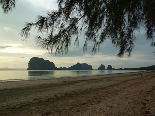 Sans transition, les vastes et nombreuses plages autour de la province de Krabi et de Phuket. Le temps est maussade. Nous profitons quand même de la proximité de la mer. Le plaisir de marcher, de se baigner, d'admirer des couchers de soleils ou de vivre de gros orages.