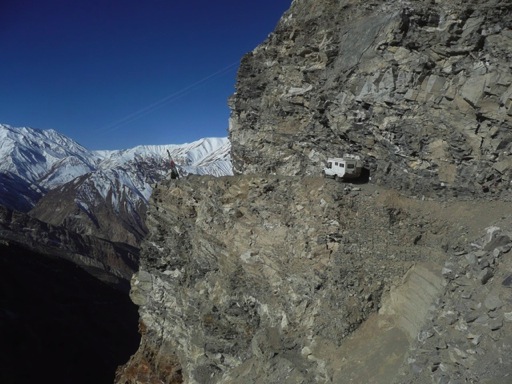 La route est annoncée comme étroite et dangereuse, un peu comme la Karakorum hightway au nord du Pakistan. Nous y vivrons de merveilleuses journées en pleine montagne, longeant d'abord la rivière Sutlej et découvrant les travaux gigantesques de barrages successifs bouleversant, oh combien, l'équilibre de la vallée (voir "Wangoo, méga barrage" ci-dessous).