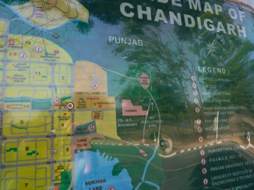 Pensant également à un architecte célèbre, Le Corbusier, clin d'oeil pour Olivier à Lyon, nous avons cherché à visiter la Haute Cour de justice. A Chandighar, Le Corbusier a remplacé Matthew Nowicki, décédé dans un accident d'avion. Il a dessiné, dans les années cinquante, la capitale de cet Etat, une ville nouvelle aérée avec ses quartiers autonomes d'un kilomètre carré et ses trois seuls hauts édifices publics : la Haute Cour, l'Assemblée Législative et le Secrétariat. Dépouillement des coursives qui desservent autant d'alvéoles de travail, escaliers doublés de larges rampes d'accès jusqu'au sommet de l'édifice, hauteur du hall d'entrée donnant sur un immense parvis. Pas possible de pénétrer dans les salles d'audience, mais nous nous faufilons dans les couloirs entre les employés, les avocats et autres professionnels de Justice.