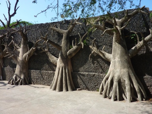 A 10 kilomètres, Auroville. Une cité d'un autre type fondée il y a 50 ans par the Mother, la compagne de Sri Aurobino venu ici dans les années 20. The Mother est décédée en 1973 au moment où la coupole en forme de balle de golfe était en construction. Près de 2000 personnes vivent ici dans des secteurs dédiés à l'éducation, l'agriculture, les arts... La fameuse coupole sert de temple, le Matrimandir, mais n'y entre pas qui veut... il faut visionner plusieurs films différents et revenir le lendemain pour pouvoir entrer... le parking par contre est ouvert toute la nuit et on y dort fort tranquillement ! On peut aussi acheter de "l'auroblochon", cousin bien éloigné du reblochon tricolore ! On a bien aimé le banian, un arbre gigantesque avec des racines aériennes qui se déploient en circonférence.