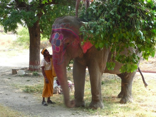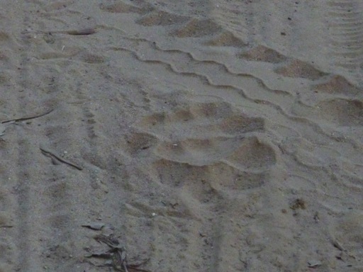 Une empreinte sur le chemin... de gros efforts nationaux pour la protection des tigres du Bengal, l'Inde a 93 parcs et près de 500 sanctuaires naturels. Les tigres sont recensés au nord du pays. Vallons profonds au gibier abondant, cours d'eau vive, forêts et zones de savane, accès motorisés contrôlés, j'ai très envie de retenter notre chance de voir un tigre au Corbett Tiger Reserve, le plus ancien des parcs créé en 1936 qui devrait en abriter 140 . Nous effectuons les formalités au dernier moment et payons l'accès "dortoir" pour avoir le droit d'entrer avec Pgaz car on ne peut pas "camper" à l'intérieur du parc. Nous roulons sur 30 km en fin d'après midi. Solitude en forêt, plus de klaxons ni de trafic, de beaux arbres, des oiseaux, des odeurs de nature dans les narines, nous croisons des chevreuils, des singes, un paon, une chouette, des éléphants. Soirée tranquille. A l'aube nous prenons une jeep pour explorer les alentours. De tigres ou de rhinocéros, point.