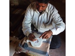 Sorte de marqueterie en pierre, la technique du pachekaari consiste à incruster des pierres précieuses ou semi précieuses sur du marbre. Chaque élément du décor envisagé est taillé, affiné, limé, poli par un artisan travaillant sur une meule activée à la main. La main droite maîtrise le mouvement de la meule avec un long bâton relié par une corde au disque de meulage. La main gauche présente la pièce à travailler. Ces pièces peuvent être si petites et si fines qu'on se demande comment l'artisan ne la perd pas entre chaque mouvement !