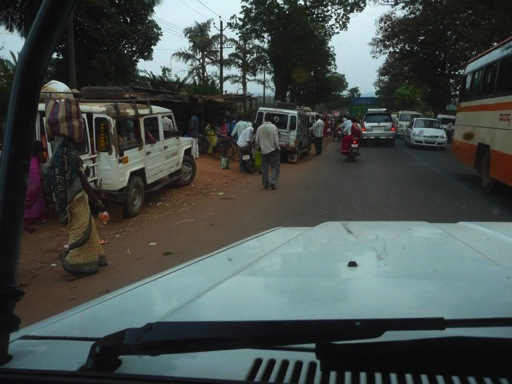 La route aux alentours : centrale électrique, engins agricoles (si rares en Inde où tout se fait à la main !), embouteillages de campagne, séance d'épouillage... nous sommes à 1600 km de Calcutta.