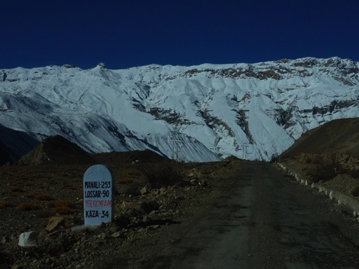 Munis de notre permis qui sera contrôle au chek point, nous continuons vers la vallée de Spiti. La route s'enfonce entre les montagnes vers le col qui est fermé jusqu'à juin. Notre objectif est de rejoindre les villages des deux monastères de Tabo et Dankar. (voir "les monastères", ci dessus).