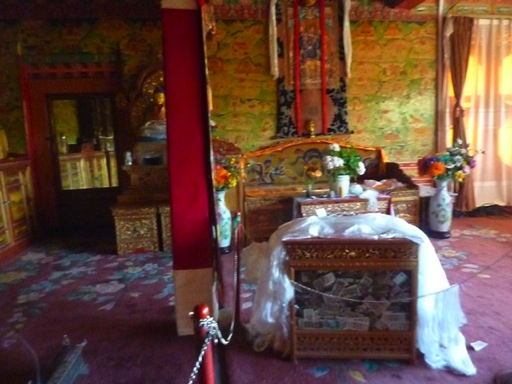 Tombe du très vénéré 10ème Panchem Lama. En 1989, venu de Pékin, sa résidence assignée, pour inaugurer la réfection du grand chorten Kumbula dans son monastère d'origine, il meurt peu après ; mort naturelle ou pas, le mystère reste entier.