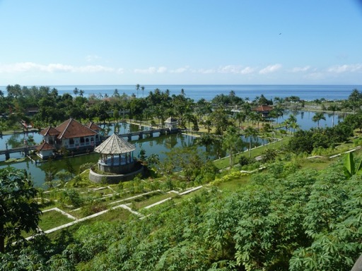 Ubud, haut lieu touristique avec ses boutiques de luxe, son Starbuck café et les files de touristes sur les trottoirs étroits. Le jardin des lotus, havre de tranquillité, deux bassins où s'épanouissent les lotus roses, un temple au fond, à l'abri d'une clôture.