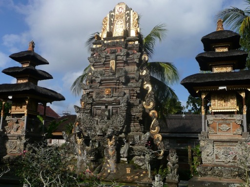 Bali, à l'est de Java, une petite île dont on peut faire le tour en un jour, certes. Des kilomètres faciles à parcourir, sur des routes plutôt propres et agréables. L'approche culturelle nécessite bien plus qu'un jour ! Bali, terre hindouiste, les repères changent. Nous sommes entrés par la côte nord, plus tranquille que la route de Dempasar.