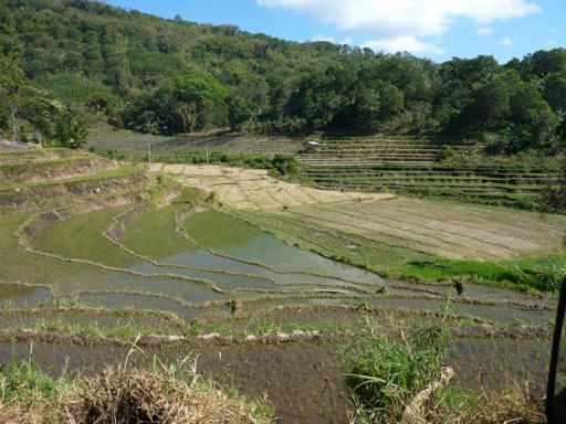 Maîs, bananes, rizières, peu de mécanisation. En altitude, le café est en fleurs.