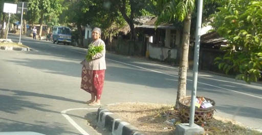 Il s'agit de palmiers spéciaux, produisant un liquide servant à préparer le vin de palme, le tuak ou arak selon les îles. Fin d'après midi à Dompu, la route est bloquée. Nous allons aux nouvelles et comprenons que la police a fermé la route pour des raisons de "coups de feu". Mais entre qui et qui ? Pour quelle cause ? Nous apprenons qu'un "terroriste" est mort en préparant une bombe sans doute destinée aux forces de l'ordre. Depuis l'assassinat de cinq policiers, ils ne portent leur uniforme qu'au poste de garnison ; ailleurs ils circulent en civil. Ici aussi, on est préoccupé par des "terroristes".