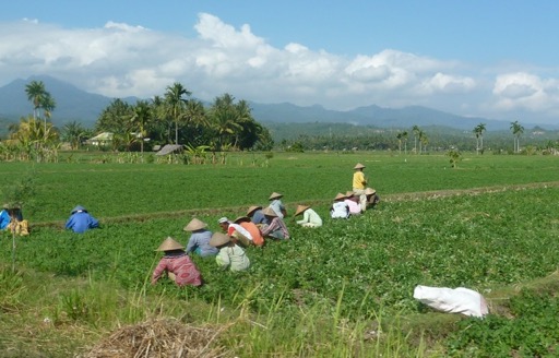 Sumatra est très agricole, maïs, riz, hévéas, légumes, etc. Forêts abondantes au nord, quelques unes sont protégées par le statut de Parc National. Engrais et pesticides à l'affiche, café en bord de route, cacao sur les troncs, papayes, etc.