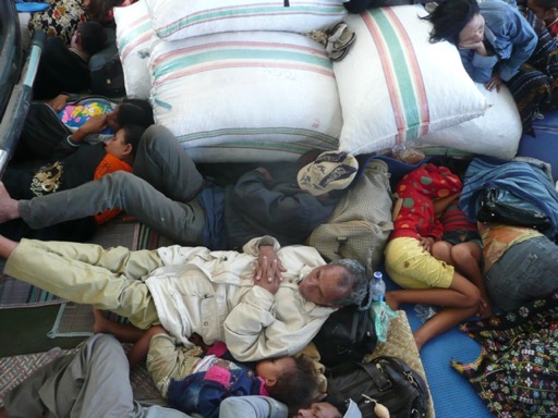 Ils sont deux cent par jour à effectuer un ou deux trajets selon leurs force et résistance. Sudan, l'un d'entre eux insiste pour nous montrer combien son dos est déformé par le joug de sa charge. Le va et vient est continu sur le sentier.
